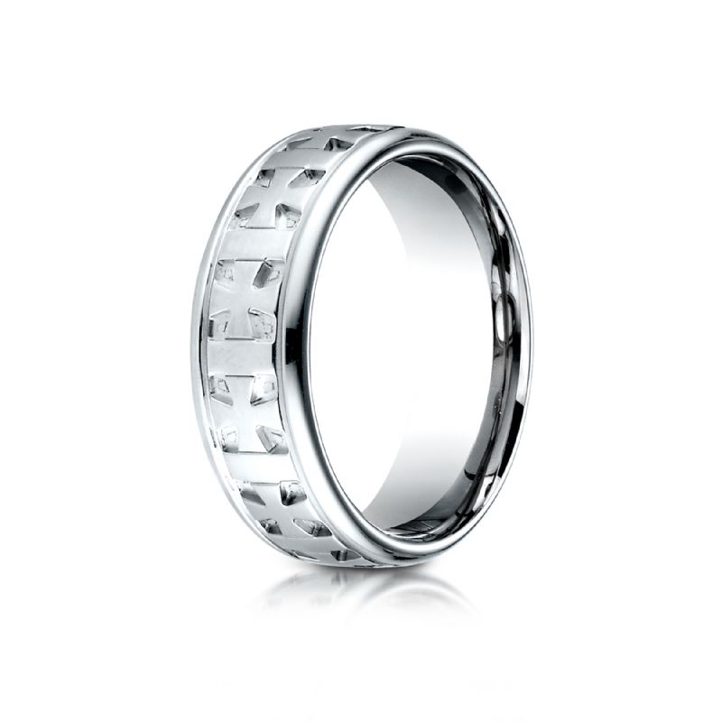 18k White Gold 7.5 mm Comfort Fit Round Edge Celtic Cross Design Band