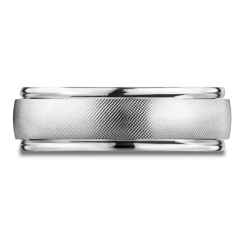 10 Karat White Gold 7mm Comfort-Fit Florentine Center High Polish Round Edge Design Band