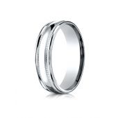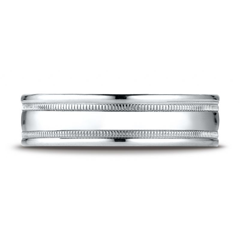 10k White Gold 6mm Comfort-Fit High Polished with Milgrain Round Edge Carved Design Band