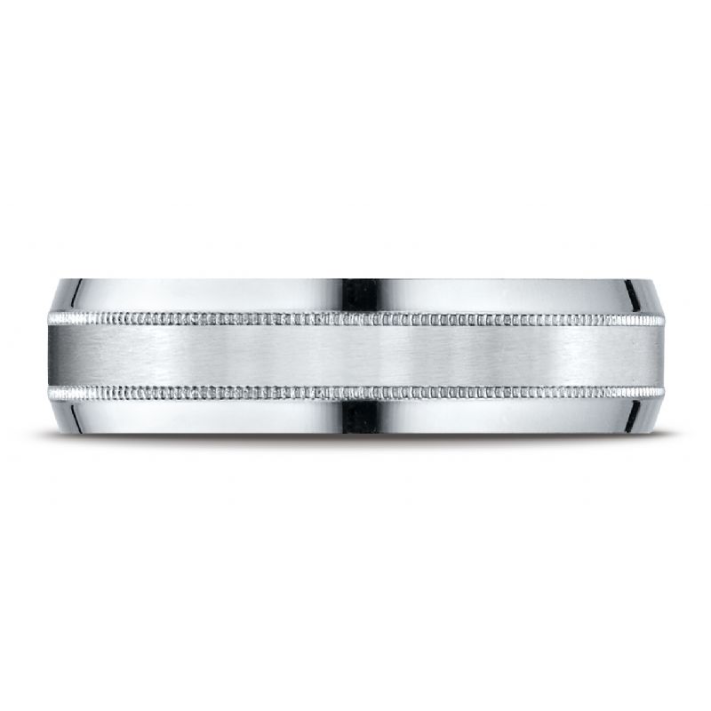 10k White Gold 6mm Comfort-Fit Satin-Finished with Milgrain Carved Design Band