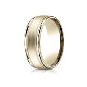 10k Yellow Gold 8mm Comfort-Fit Satin Finish Center with Milgrain Round Edge Carved Design Band