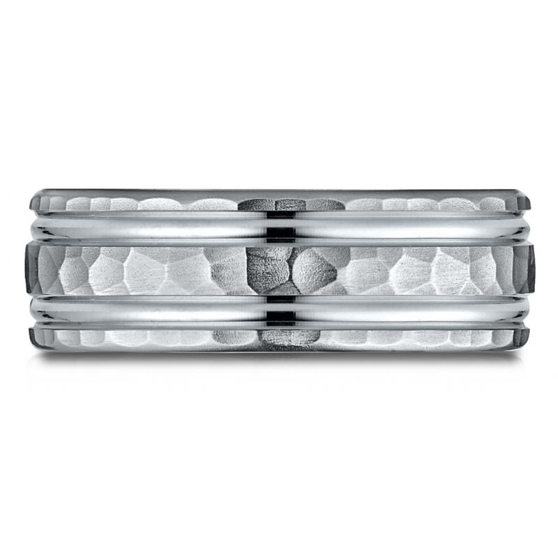 14 Karat White Gold 7.5mm Comfort-Fit Hammered Finish Double High Polish Cut Design Band