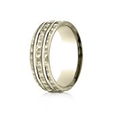 14 Karat Yellow Gold 7.5mm Comfort-Fit Hammered Finish Double High Polish Cut Design Band