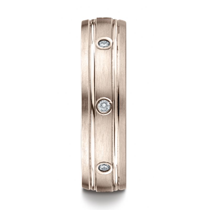 14k Rose Gold 6mm Comfort-Fit burnish Set 8-Stone Satin Finish Diamond Eternity Ring (.16ct)