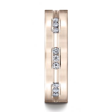 14k Rose Gold 6mm Comfort-Fit Etched Channel Set 9-Stone Diamond Ring (.18ct)