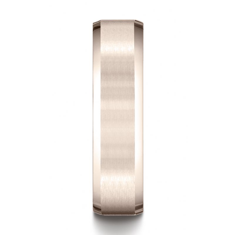 14k Rose Gold 6mm Comfort-Fit Satin-Finished with High Polished Beveled Edge Carved Design Band