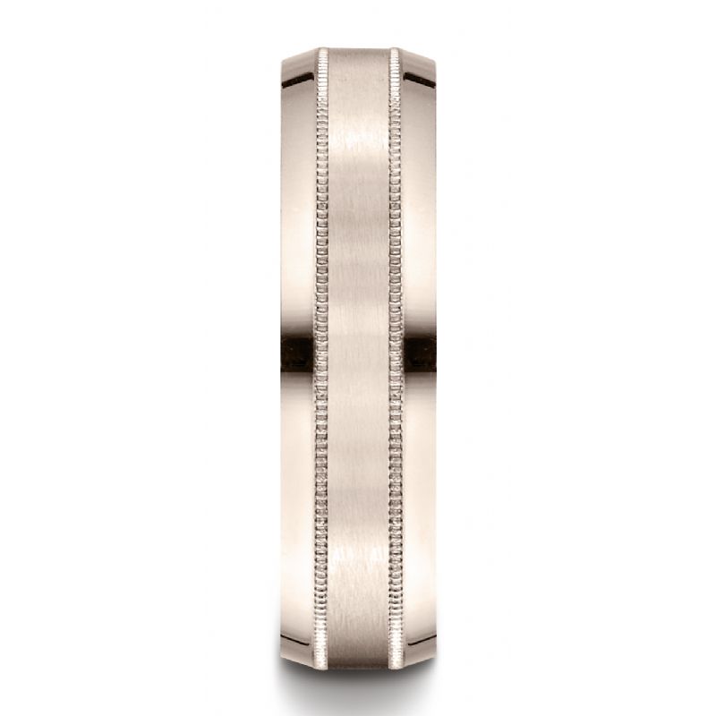 14k Rose Gold 6mm Comfort-Fit Satin-Finished with Milgrain Carved Design Band