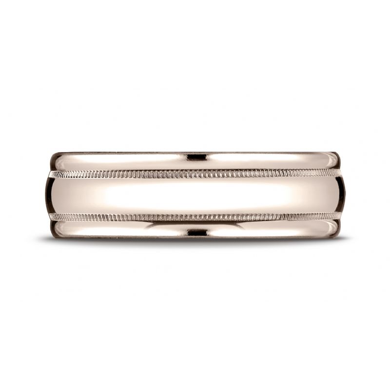 14k Rose Gold 7.5mm Comfort-Fit Milgrain high polish carved Design Band