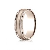 14k Rose Gold 7mm Comfort-Fit Satin Finish Center with Milgrain Round Edge Carved Design Band