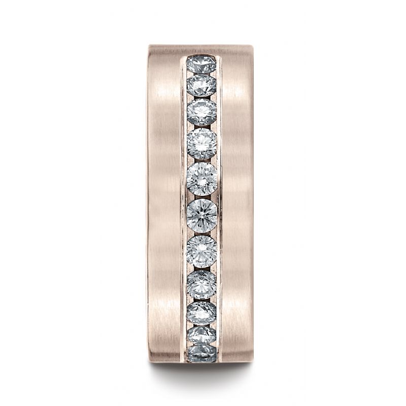 14k Rose Gold 8mm Comfort-Fit Channel Set 12-Stone Diamond Ring (.72ct)