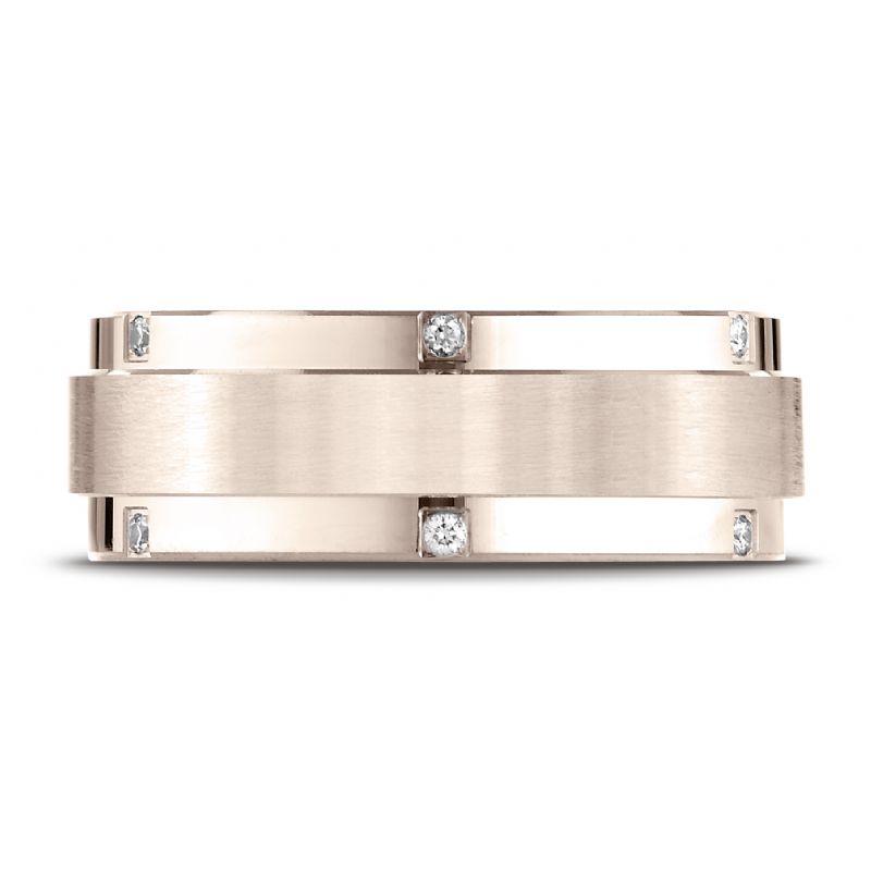 14k Rose Gold 8mm Comfort-Fit Pave Set 12-Stone Diamond Ring (.12ct)