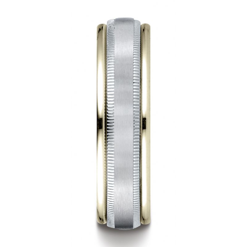 14k Two-Toned 6mm Comfort-Fit Satin Finish Carved Design Band with Milgrain.