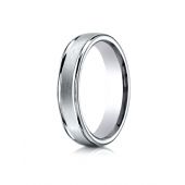 14k White Gold 4mm Comfort-Fit Satin-Finished High Polished Round Edge Carved Design Band