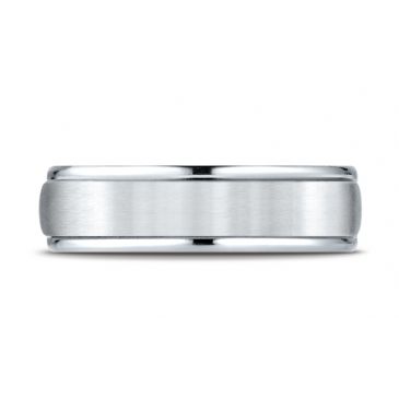 14k White Gold 6mm Comfort-Fit Satin Finish High Polished Round Edge Carved Design Band