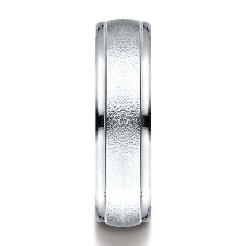 14k White Gold 6mm Comfort-Fit Wired-Finished High Polished Round Edge Carved Design Band