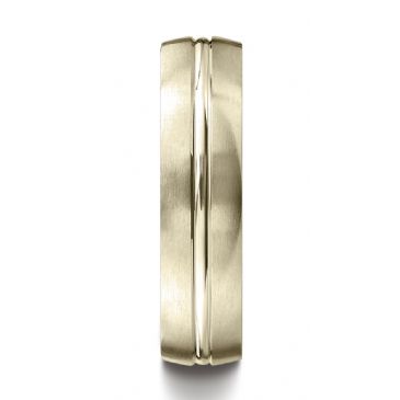 14k Yellow Gold 6mm Comfort-Fit Satin-Finished with High Polished Center Cut Carved Design Band