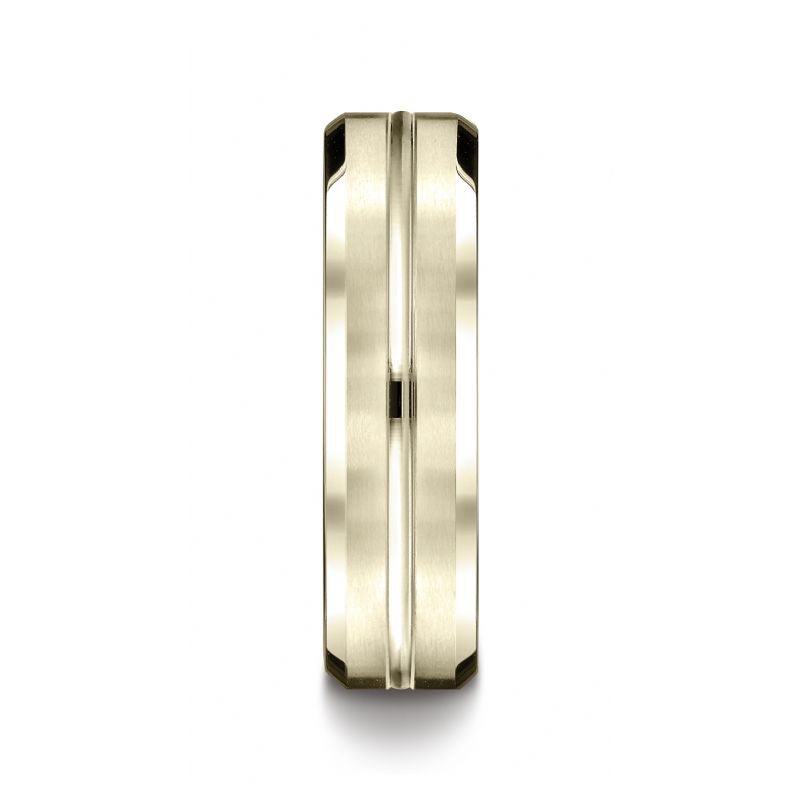 14k Yellow Gold 6mm Comfort-Fit Satin-Finished with High Polished Cut Carved Design Band