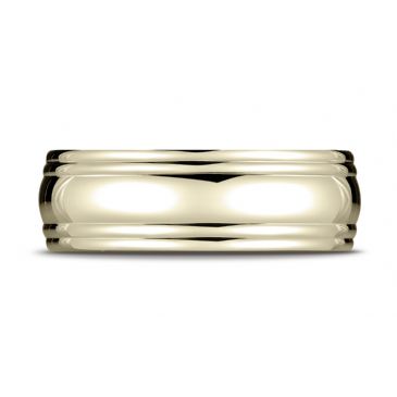 14k Yellow Gold 7.5mm Comfort-Fit High Polished Double Round Edge Carved Design Band