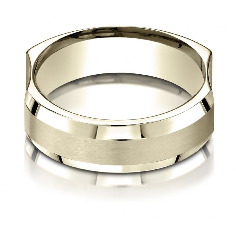 14k Yellow Gold 7mm Ergonomic Comfort-Fit Satin Finish with High Polish Beveled Edge Design Band