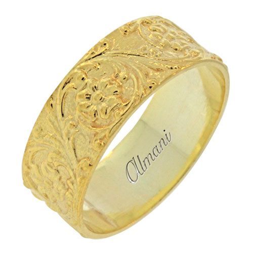 14K Yellow Gold 8mm Antique Wedding Band Comfort Fit AWB100414KY