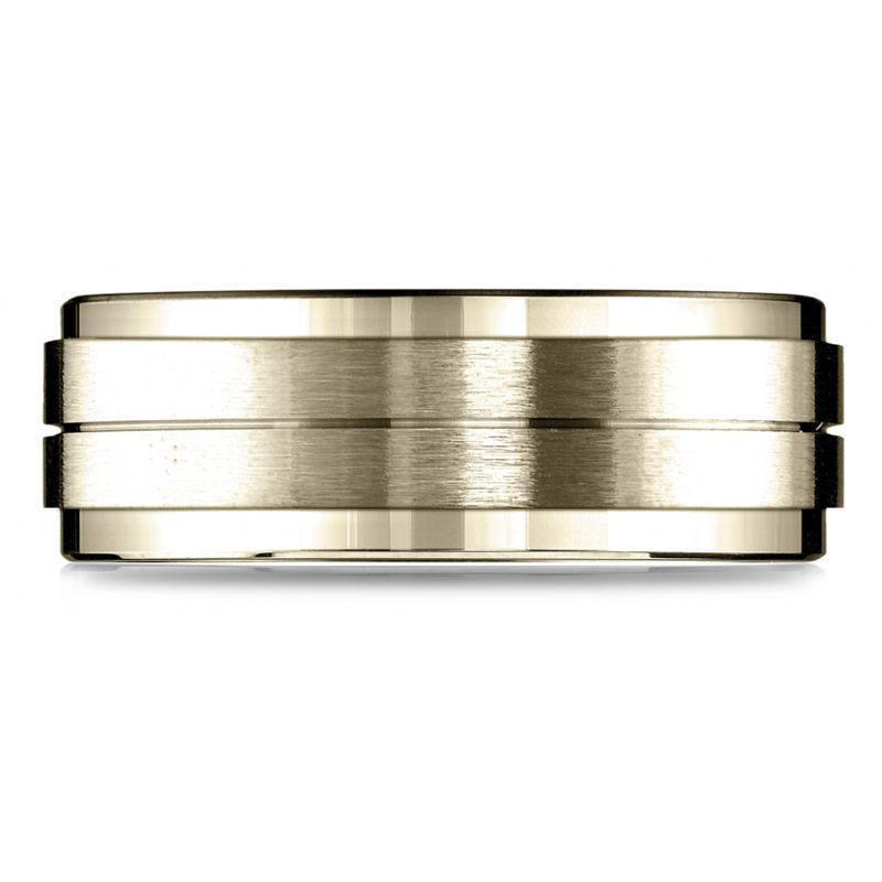 14k Yellow Gold 8mm Comfort-Fit Drop Bevel Satin Center Design Band