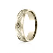 18 Karat Yellow Gold 6.5mm Comfort-Fit Mesh Center Satin Finish Edge Design Band