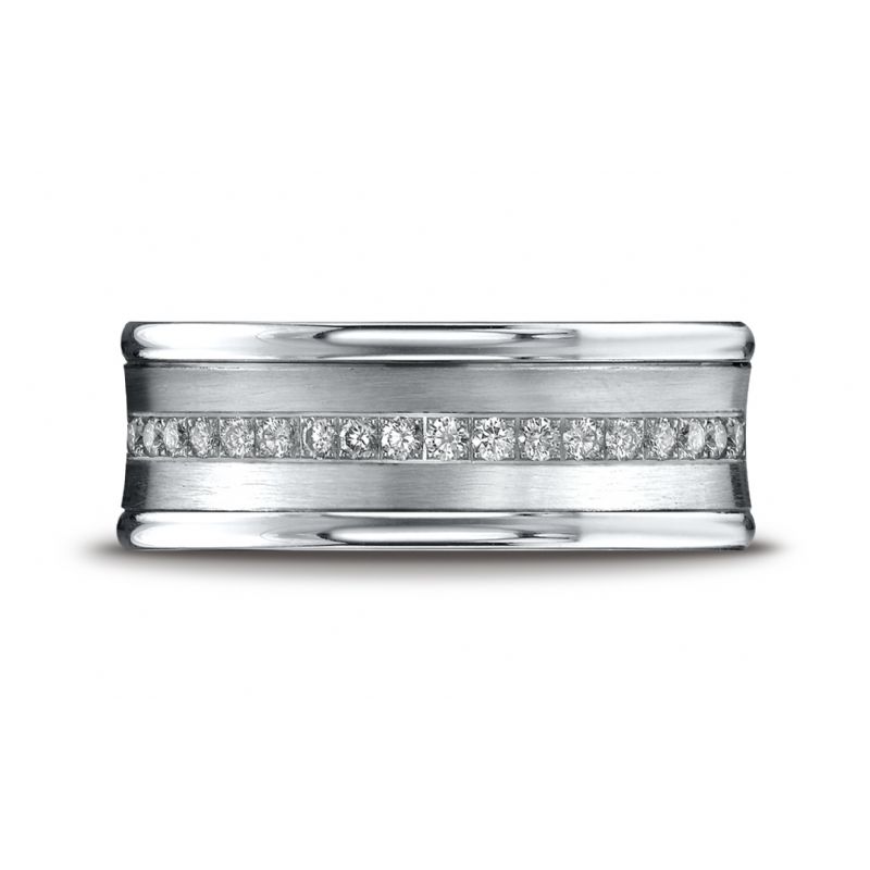 18k White Gold 7.5mm Comfort-Fit Pave Set 16-Stone Diamond Ring (0.32ct)