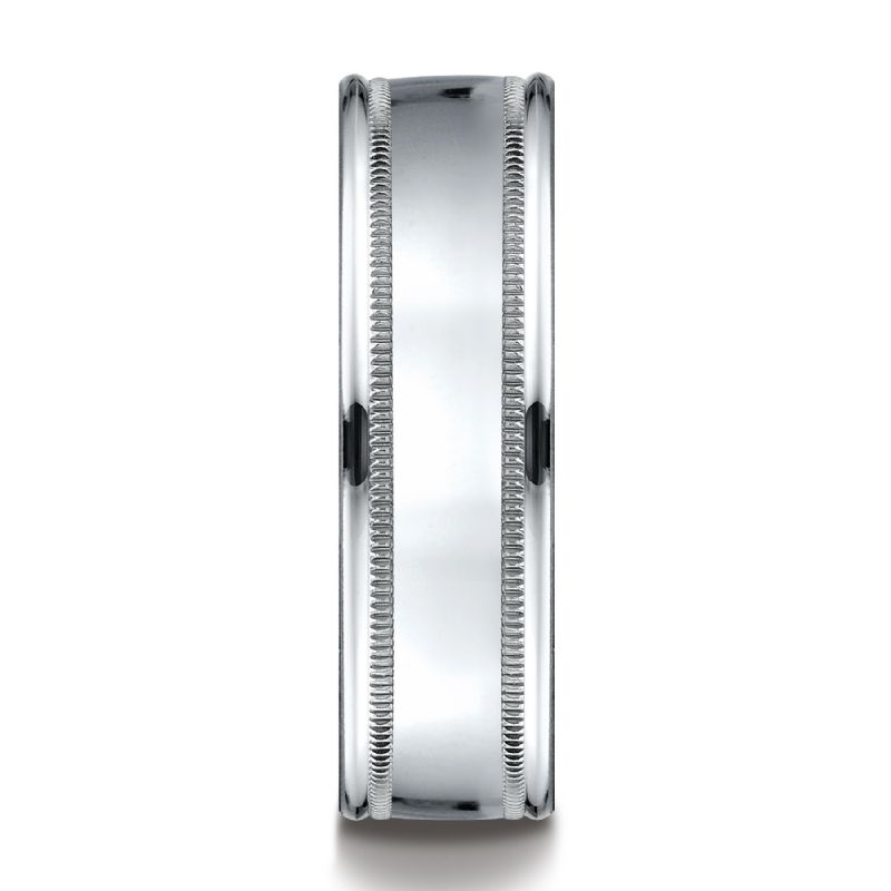 18k White Gold 7mm Comfort-Fit High Polished with Milgrain Round Edge Carved Design Band