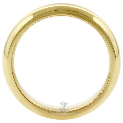 This 18k Gold Plain Dome Wedding Band is 5.00mm wide and approximately 2.50mm thick, and is rounded on the inside.