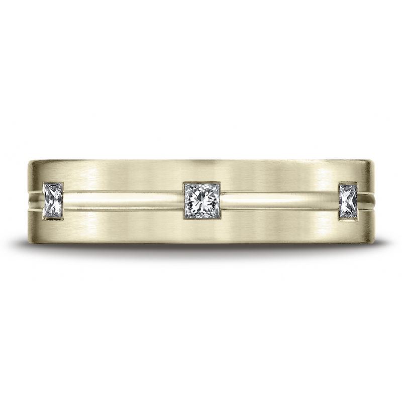 18k Yellow Gold 6mm Comfort-Fit Princess Cut Burnish Set 6-Stone Eternity Ring (0.60)ctw