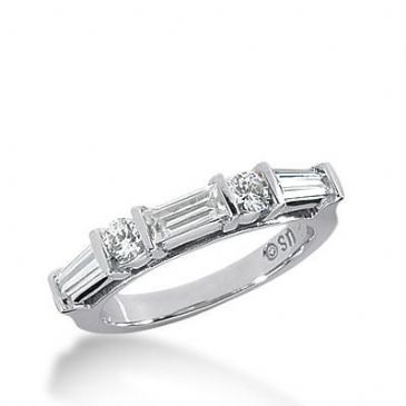 18K Gold Diamond Anniversary Wedding Ring 8 Round Brilliant, 6 Straight Baguette Diamonds 0.88ctw 261WR112218K