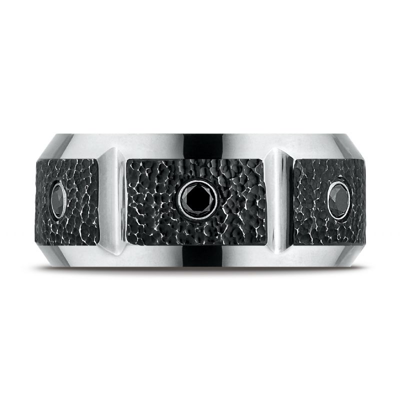 Cobaltchrome 10mm Comfort Fit Blackened Micro hammer Diamond Ring (0.20)ctw