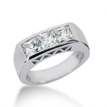 14K Gold Diamond Anniversary Wedding Ring 3 Princess Cut Stones Total 1.50ctw 639WR242114k