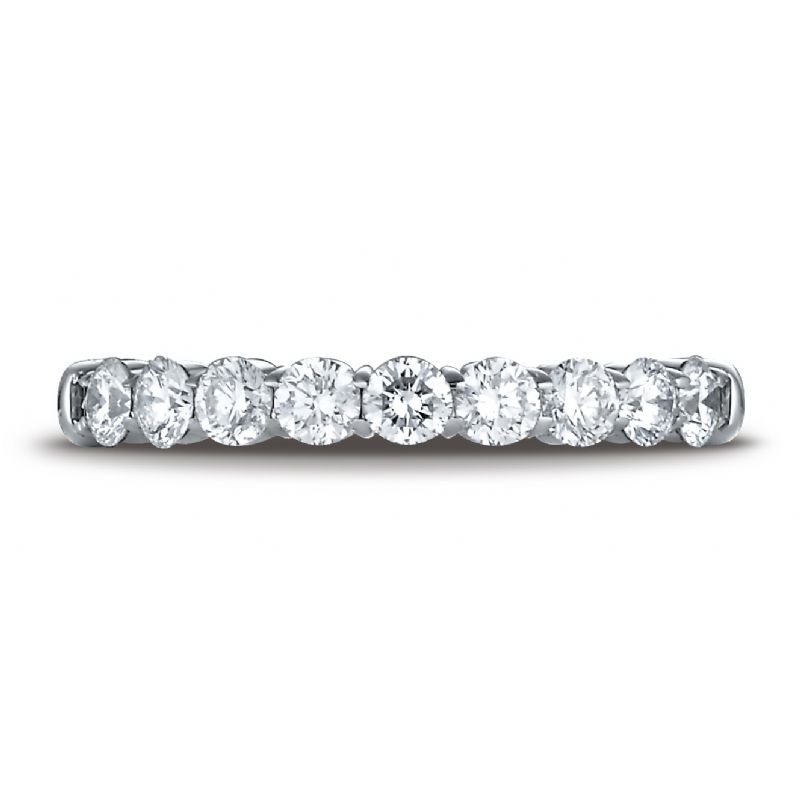Platinum 3mm high polish Shared Prong 9 Stone Diamond Ring (.72)