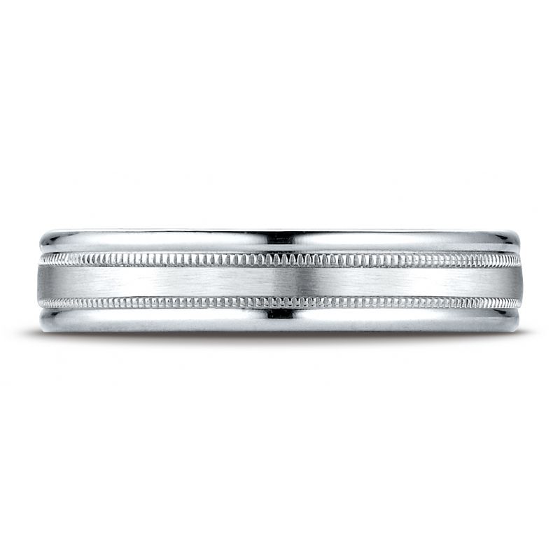 Platinum 4mm Comfort-Fit Satin Finish Center with a round edge and milgrain Carved Design Band