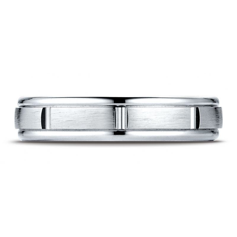 Platinum 4mm Comfort-Fit Satin-Finished 8 High Polished Center Cuts and Round Edge Carved Design Band