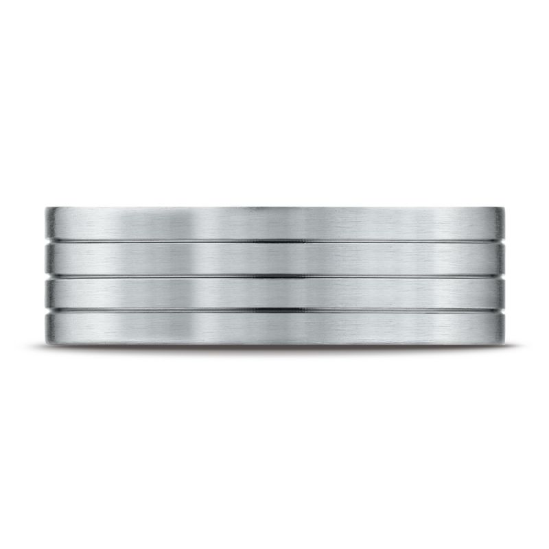 Platinum 7mm Comfort-Fit Satin-Finished with Parallel Center Cuts Carved Design Band