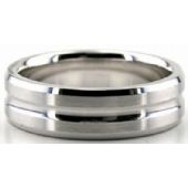This 950 Platinum band is diamond cut and has a width of 6mm. Both sides of this fantastic ring is bezelled cut, which creates a smoother look and more detail to the eye. A bright cut deeply cuts through the center around the ring with satin finish on each side of the cut.