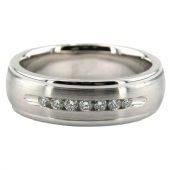 This Platinum 950 Diamond Wedding Ring is 7.0mm wide. The band is rounded on the inside, creating a comfort fit for constant wear that will not pinch the skin and still slides easily on and off of the finger.