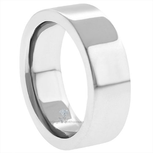 This Platinum 950 Plain Flat Wedding Band is 8.00mm wide and approximately 2.50mm thick, and is rounded on the inside to provide the most comfortable fit possible.
