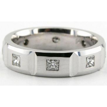 18k White Gold Comfort Fit 8mm High Polish Round Edge Satin Finish Octagonal Center Design Band